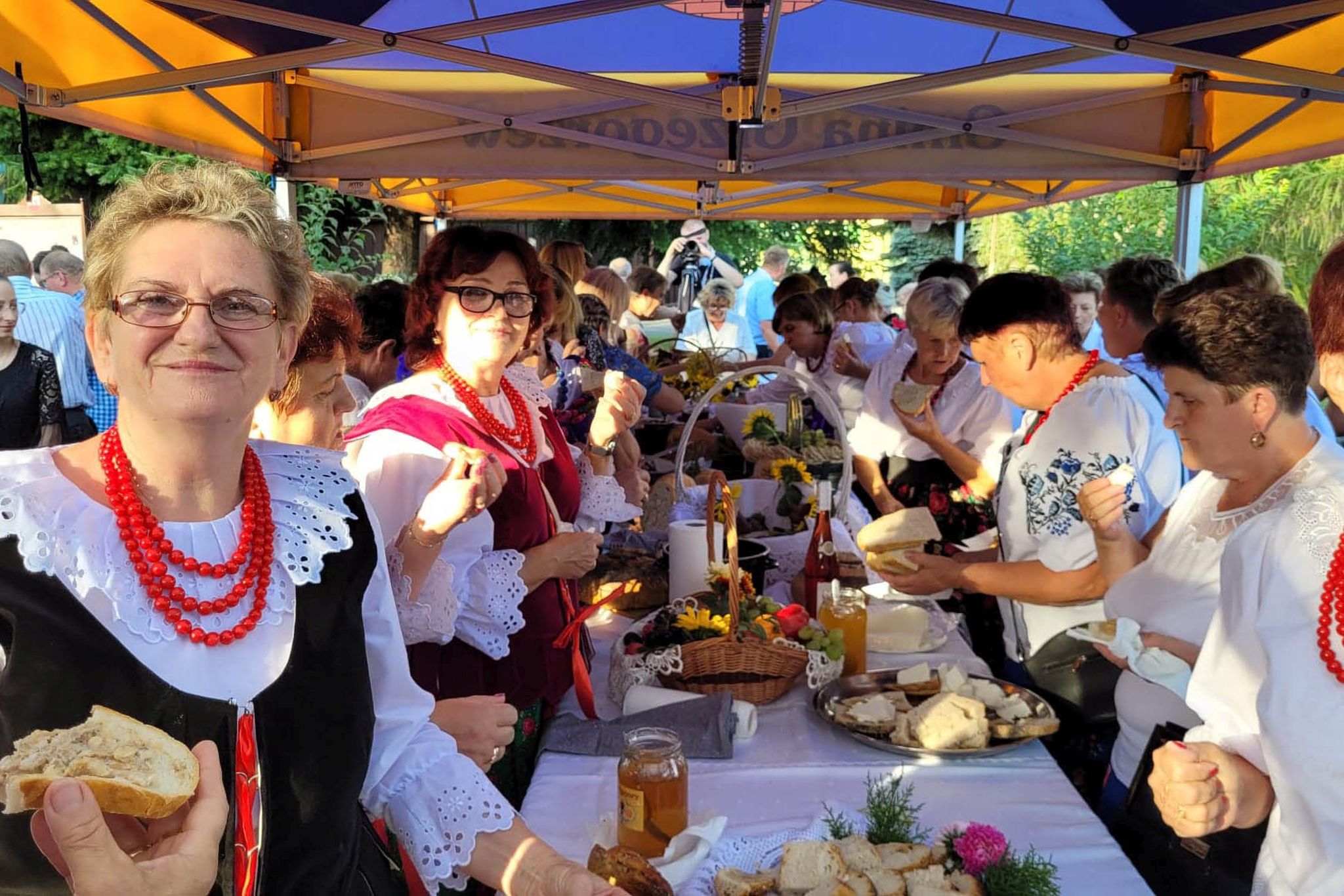 Na zakoÅ„czenie uroczystoÅ›ci na placu przy koÅ›ciele nastÄ…piÅ‚o tradycyjne dzielenie siÄ™ chlebem i darami. Każdy uczestnik mógÅ‚ skosztować specjaÅ‚ów przygotowanych przez parafian.