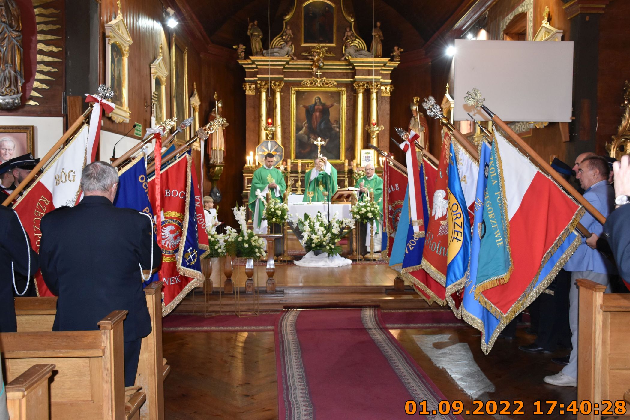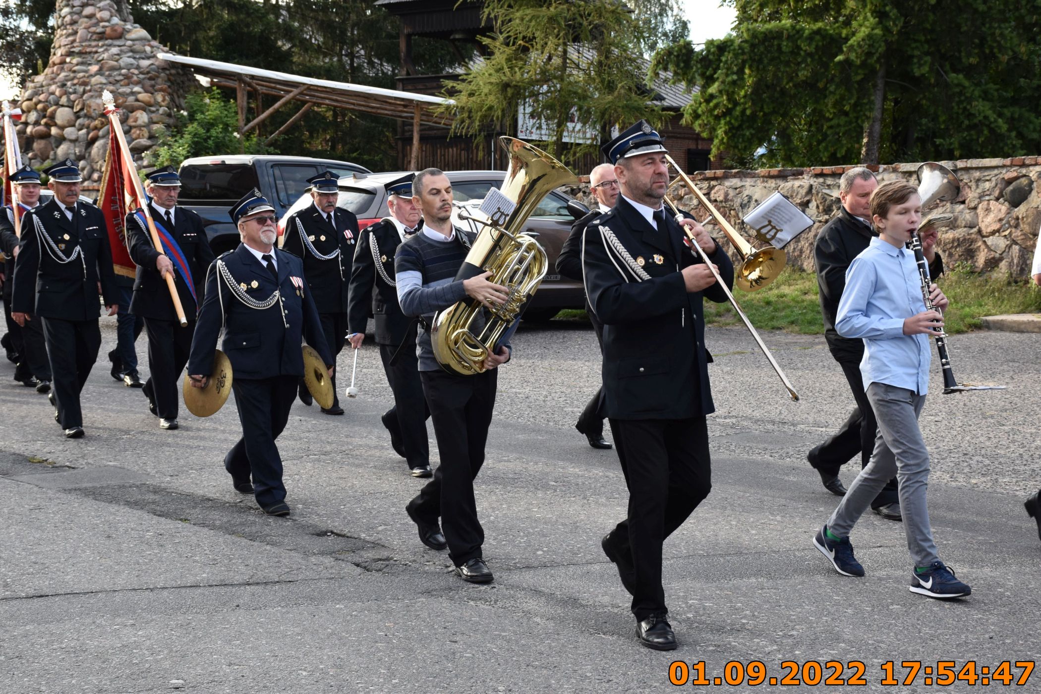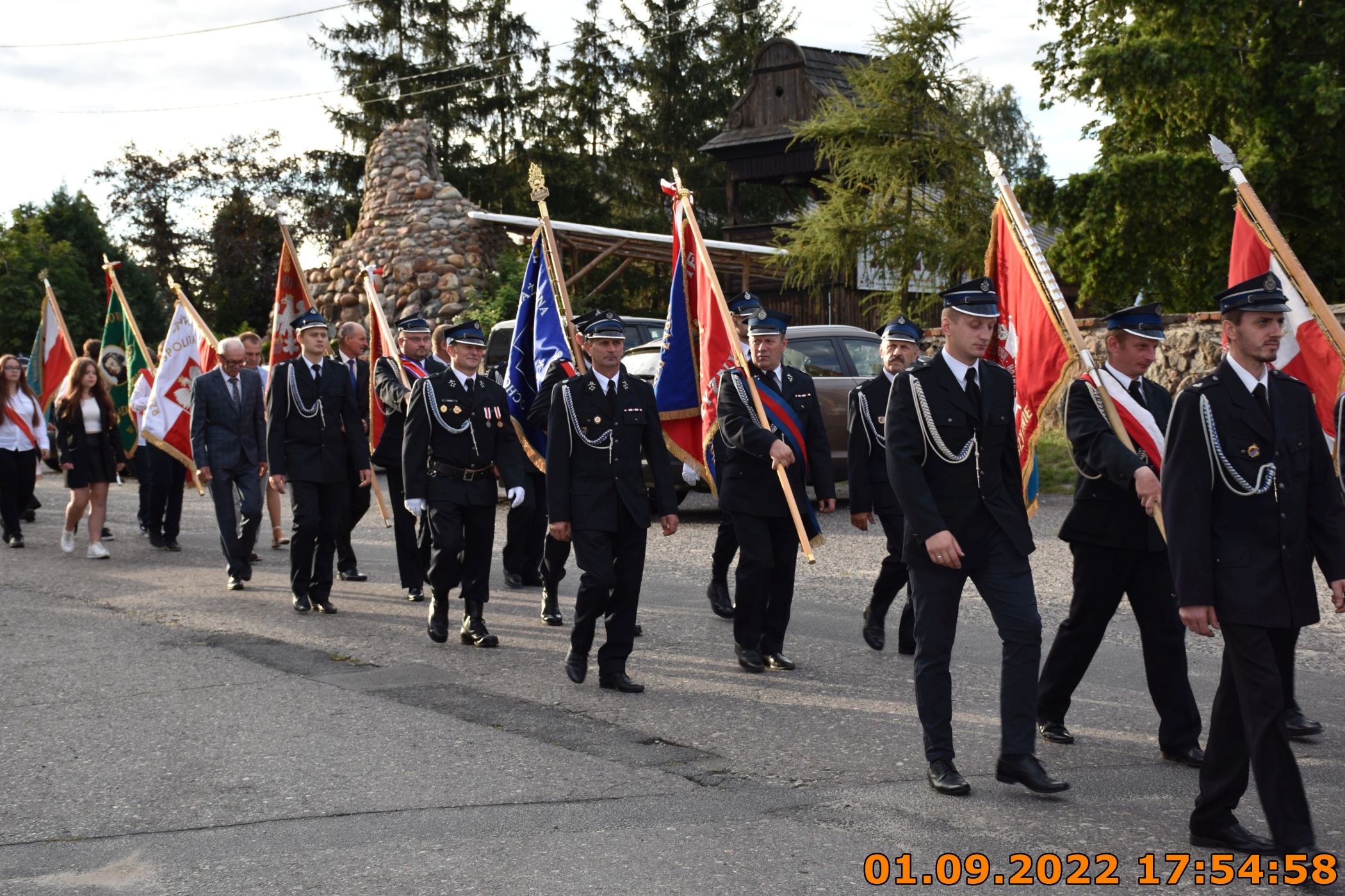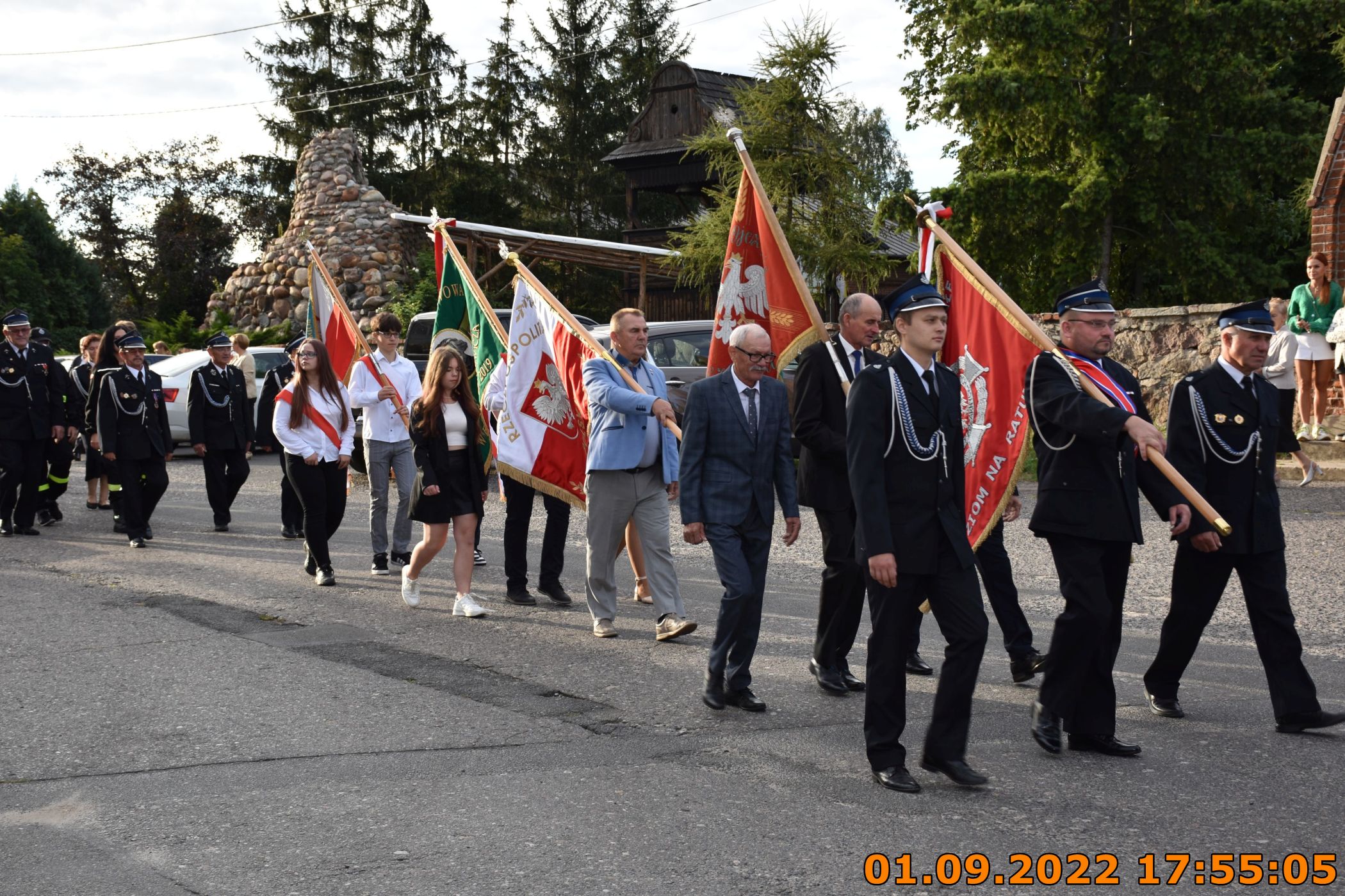 Po zbiórce przed Domem Strażaka samorządowcy, poczty sztandarowe, delegacje jednostek OSP, placówek oświatowych i mieszkańcy gminy na czele z orkiestrą dętą udali się do kościoła parafialnego aby uczestniczyć we Mszy świętej w intencji poległych w obronie naszej ojczyzny.