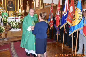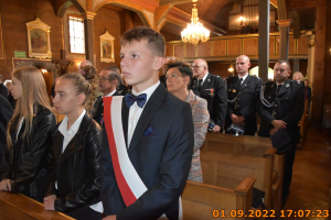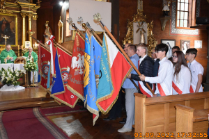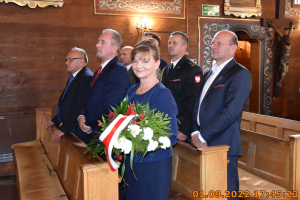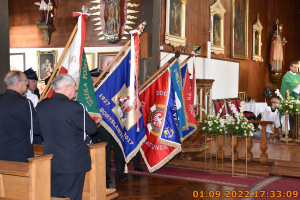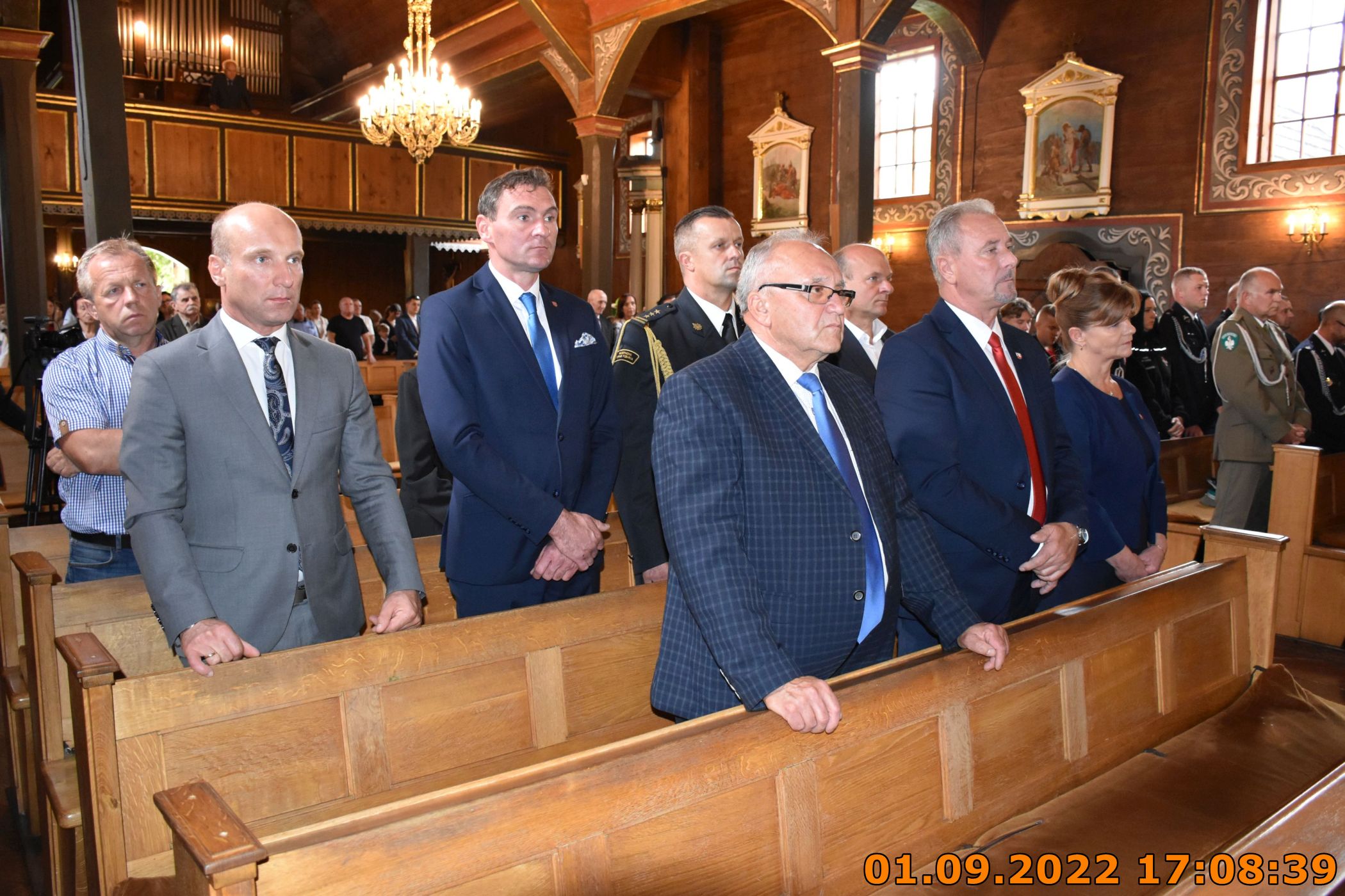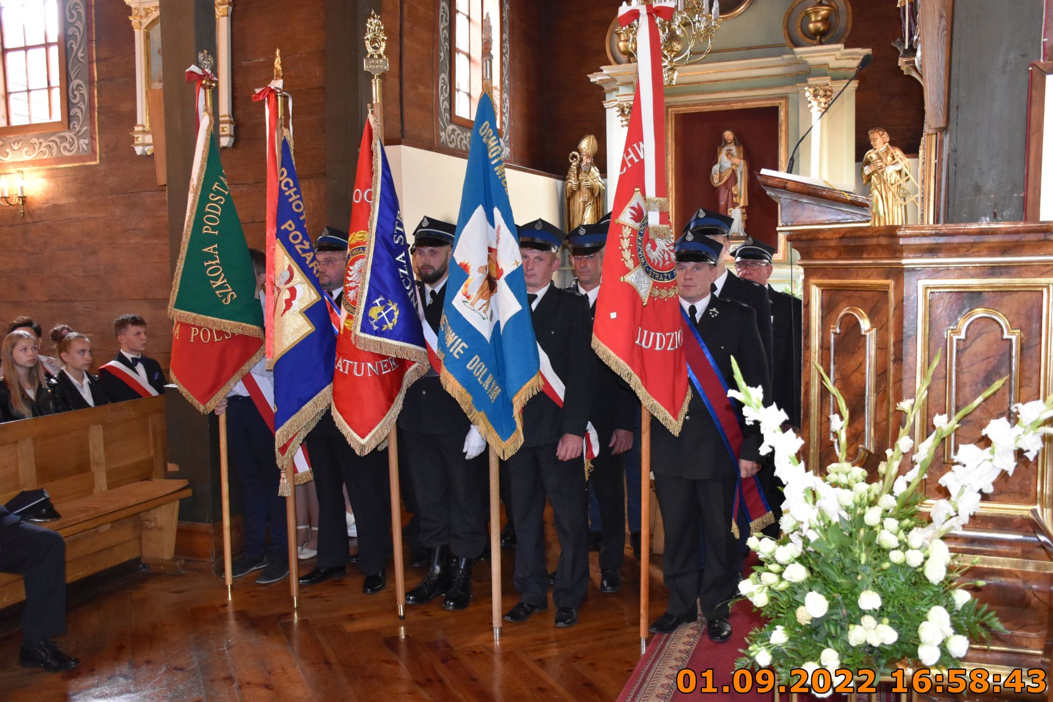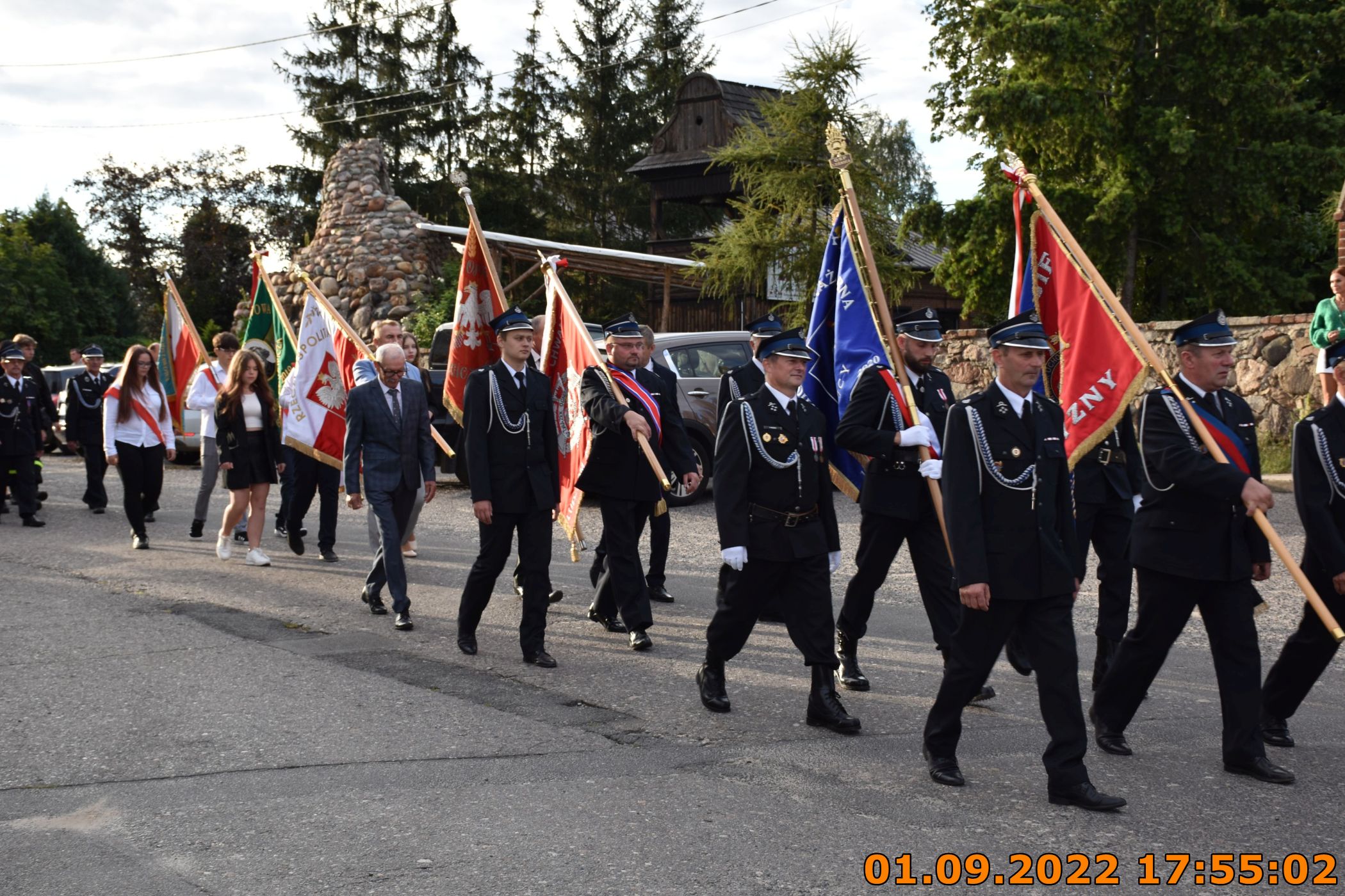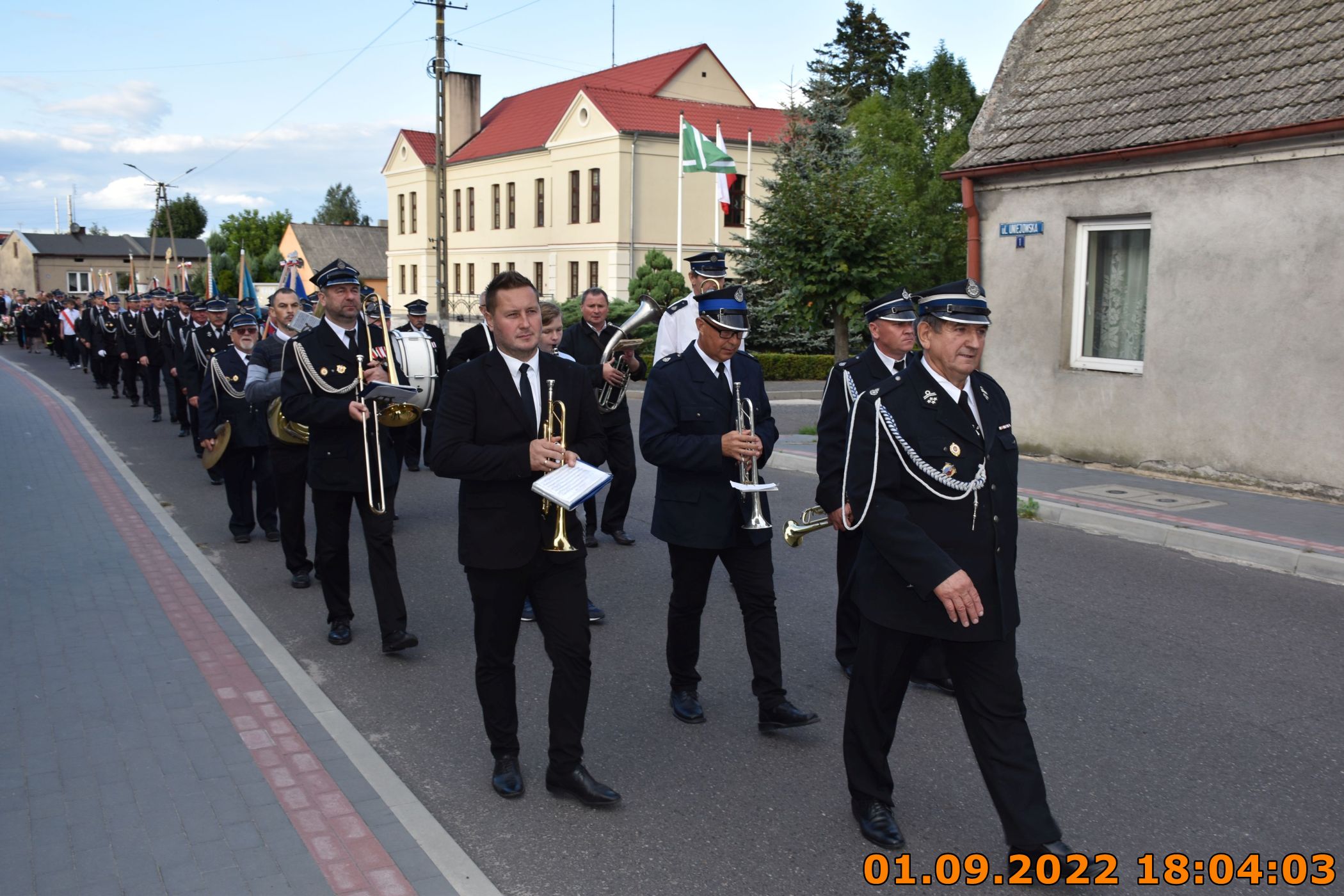 Po zbiórce przed Domem Strażaka samorządowcy, poczty sztandarowe, delegacje jednostek OSP, placówek oświatowych i mieszkańcy gminy na czele z orkiestrą dętą udali się do kościoła parafialnego aby uczestniczyć we Mszy świętej w intencji poległych w obronie naszej ojczyzny.