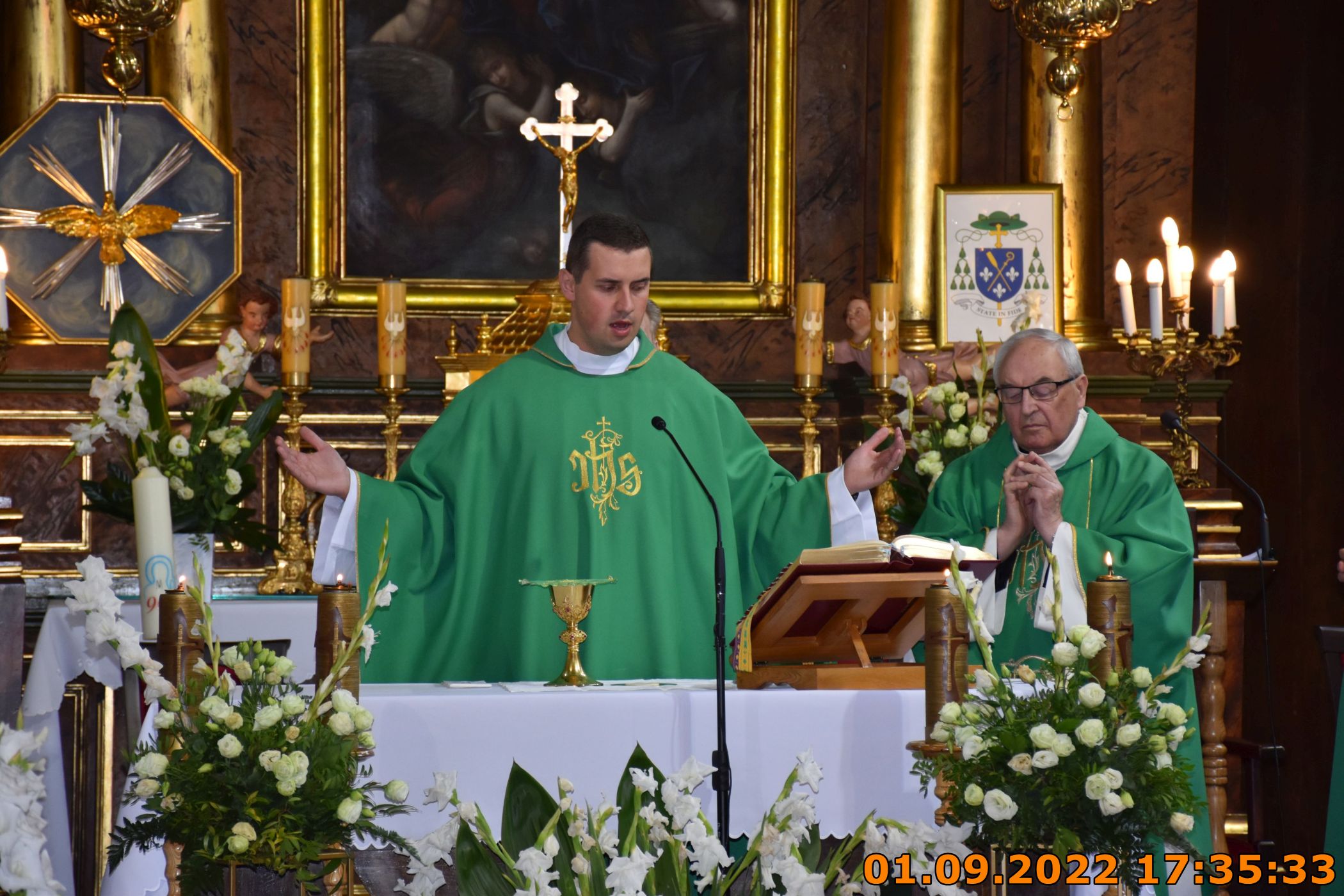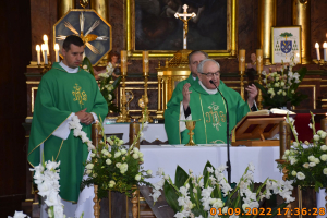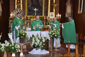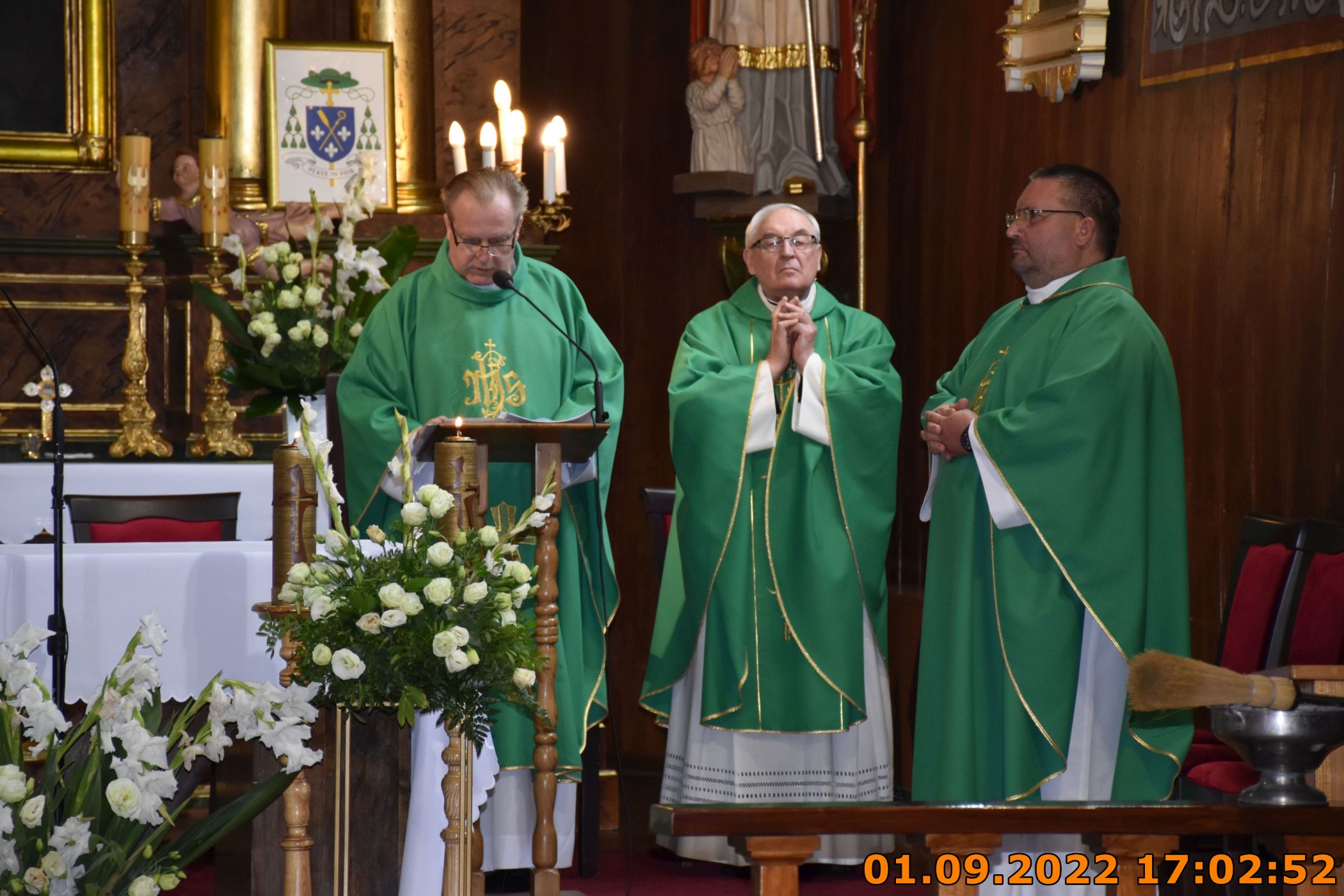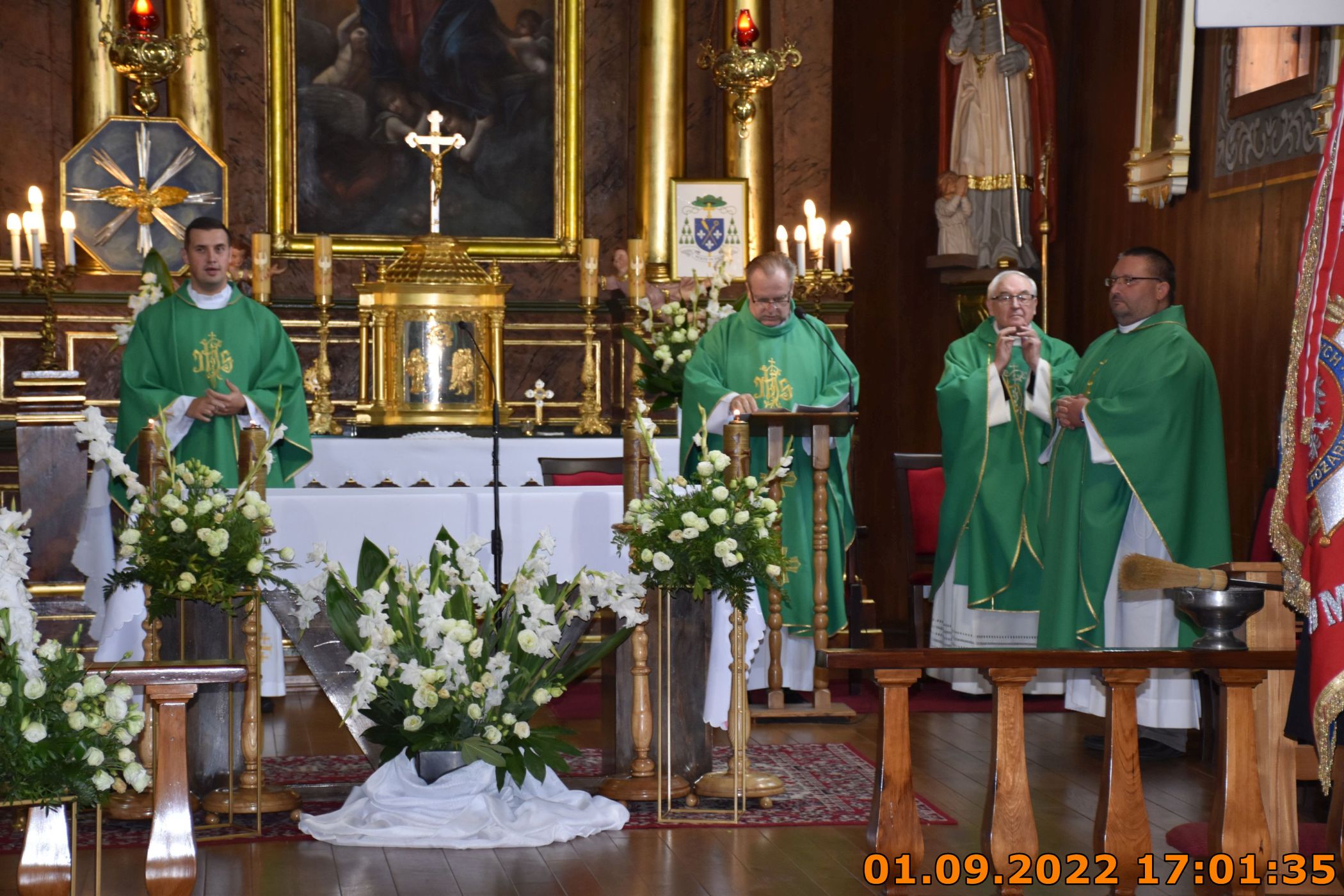 Mszę Świętą odprawił ksiądz proboszcz Krzysztof Pietryga w koncelebrze z księdzem prałatem Michałem Pietrzakiem, księdzem wikariuszem Karolem Kropkowskim oraz księdzem Krzysztofem Kaczmarkiem z parafii Narodzenia Najświętszej Maryi Panny w Chełmnie.