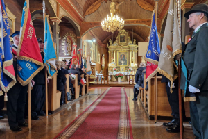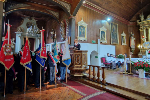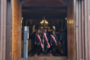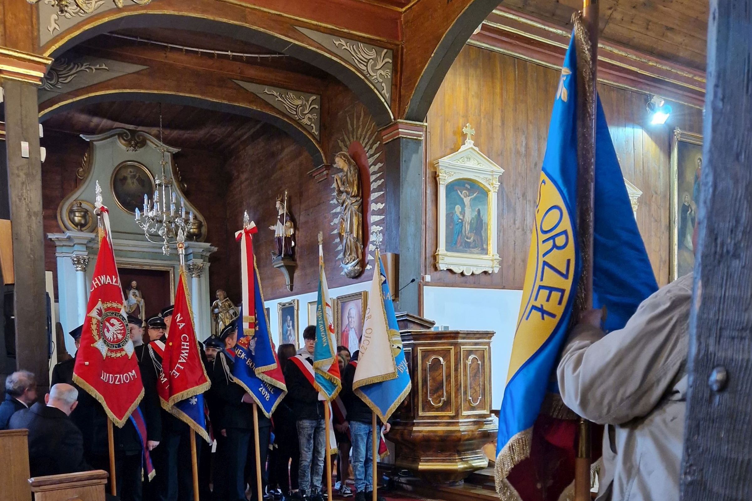 Dumnie noszone były Poczty Sztandarowe przez licznie przybyłych druhów ze wszystkich jednostek OSP naszej gminy. Niezmiernie miło było zobaczyć również sztandary naszych sąsiadów z OSP Leśnica i OSP Przybyłów oraz Poczty Sztandarowe z Koła Łowieckiego nr 6 „Ryś” w Barłogach, Gminnego Związku Kółek Rolników i Organizacji Rolniczych, Szkoły Podstawowej im. Tadeusza Zawadzkiego „Zośki”, Szkoły Podstawowej im. Jana Pawła II w Bylicach-Kolonii, Szkoły Podstawowej im. Adama Mickiewicza w Barłogach oraz Klubu Sportowego ,,Orzeł Grzegorzew”.