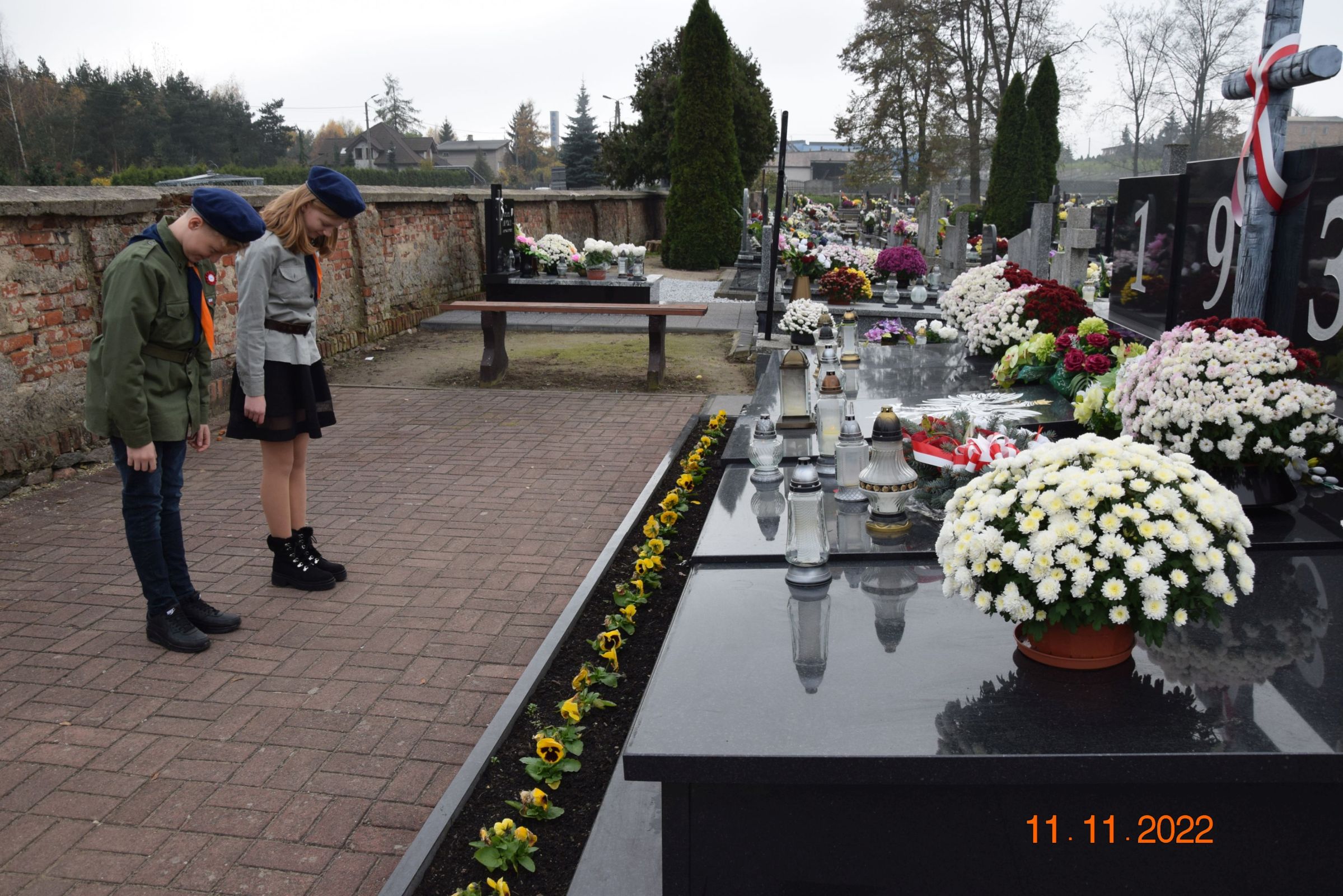 Dziękujemy również harcerzom za pełnienie warty przy tablicy upamiętniającej poległych w walce o niepodległość oraz zapalenie symbolicznych zniczy na grobach osób, które oddały życie w obronie Ojczyzny.
