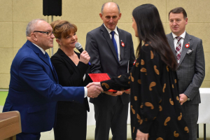 Wręczenie wyróżnień poprzedziły wystąpienia Pana Ireneusza Niewiarowskiego i Pana Janusza Dorabiały, którzy przedstawili historię opozycji na ziemi konińskiej i terenie Gminy Grzegorzew. Rys historyczny o drodze do Niepodległości oraz o miejscowych bohaterach walki o wolną Polskę przedstawił Pan Tomasz Nuszkiewicz – Dyrektor Muzeum Technik Ceramicznych w Kole.