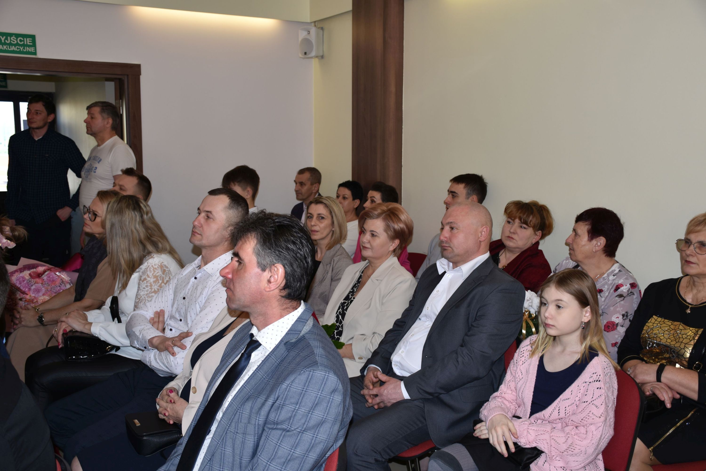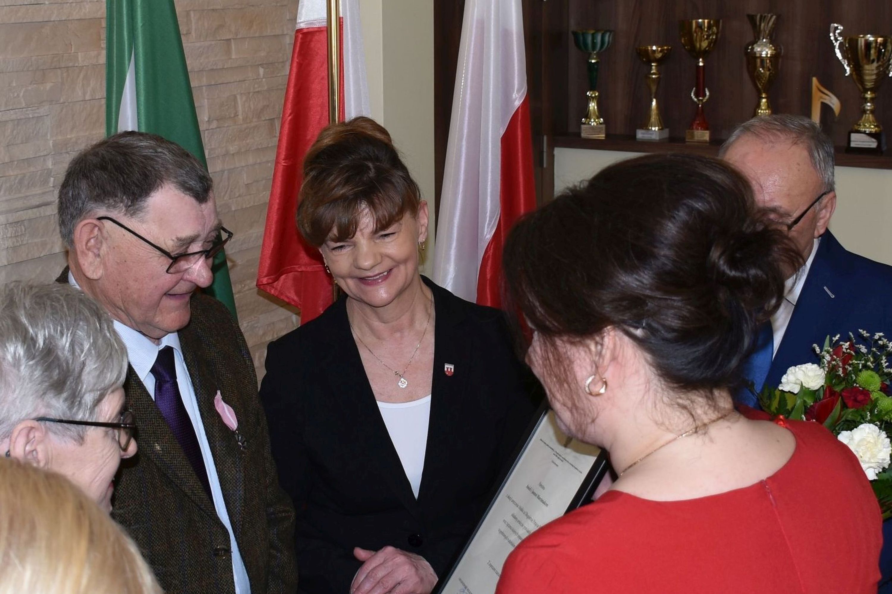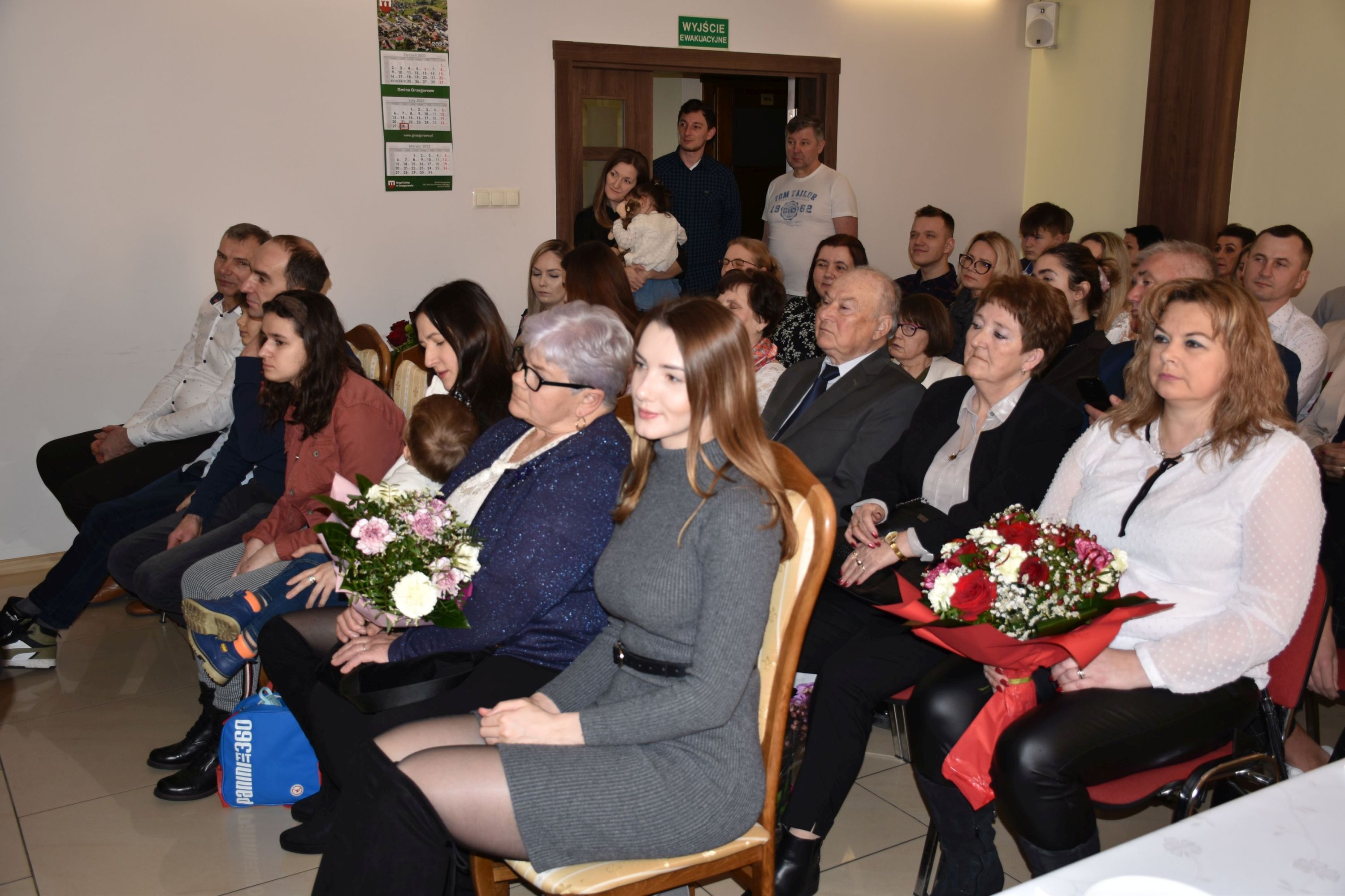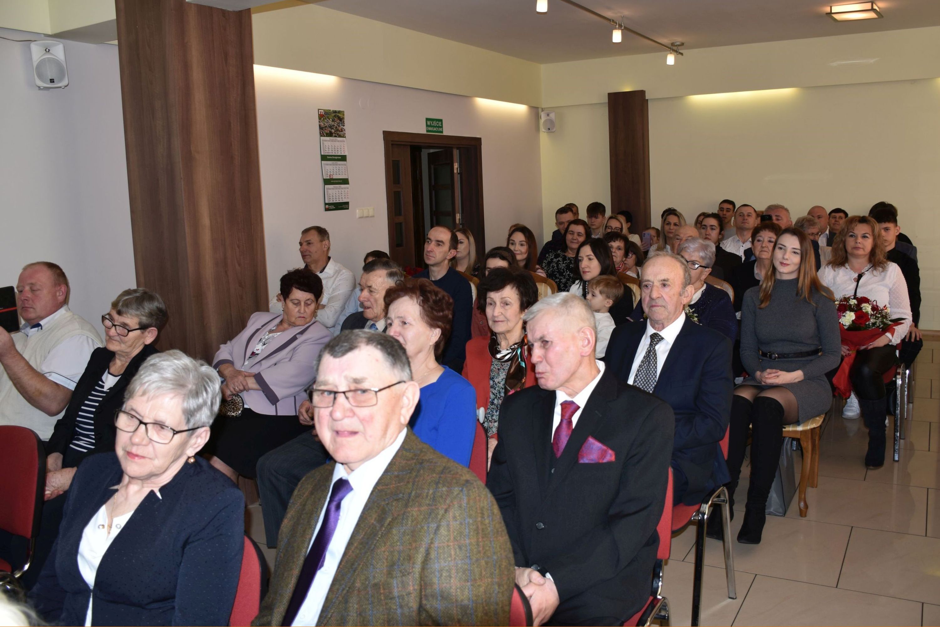Wójt Gminy Bożena Dominiak wręczyła Szanownym Jubilatom listy gratulacyjne w teczkach okolicznościowych z ich wizerunkami oraz kopie aktów małżeństwa. Zwróciła się do Czcigodnych Jubilatów słowami: