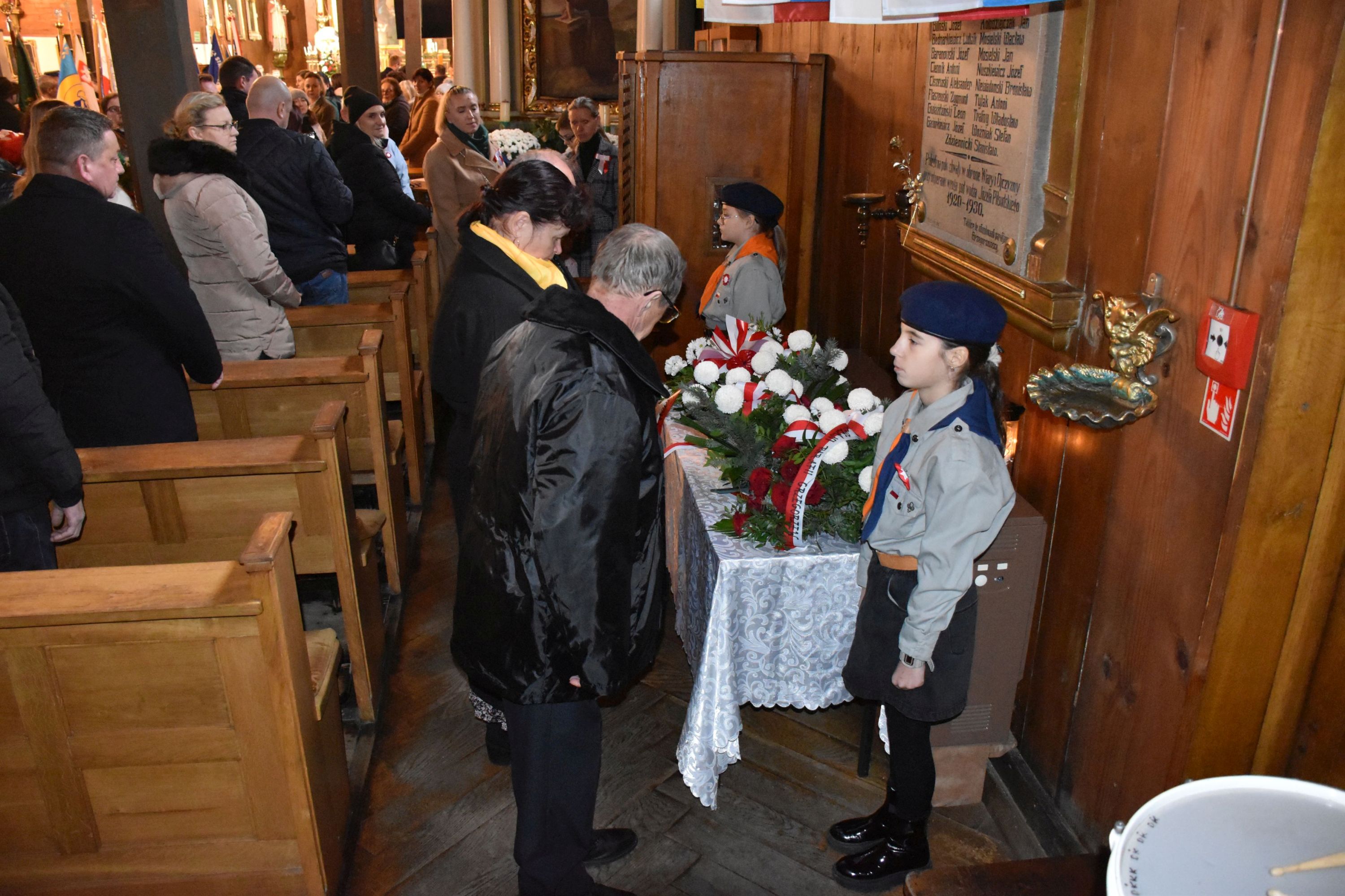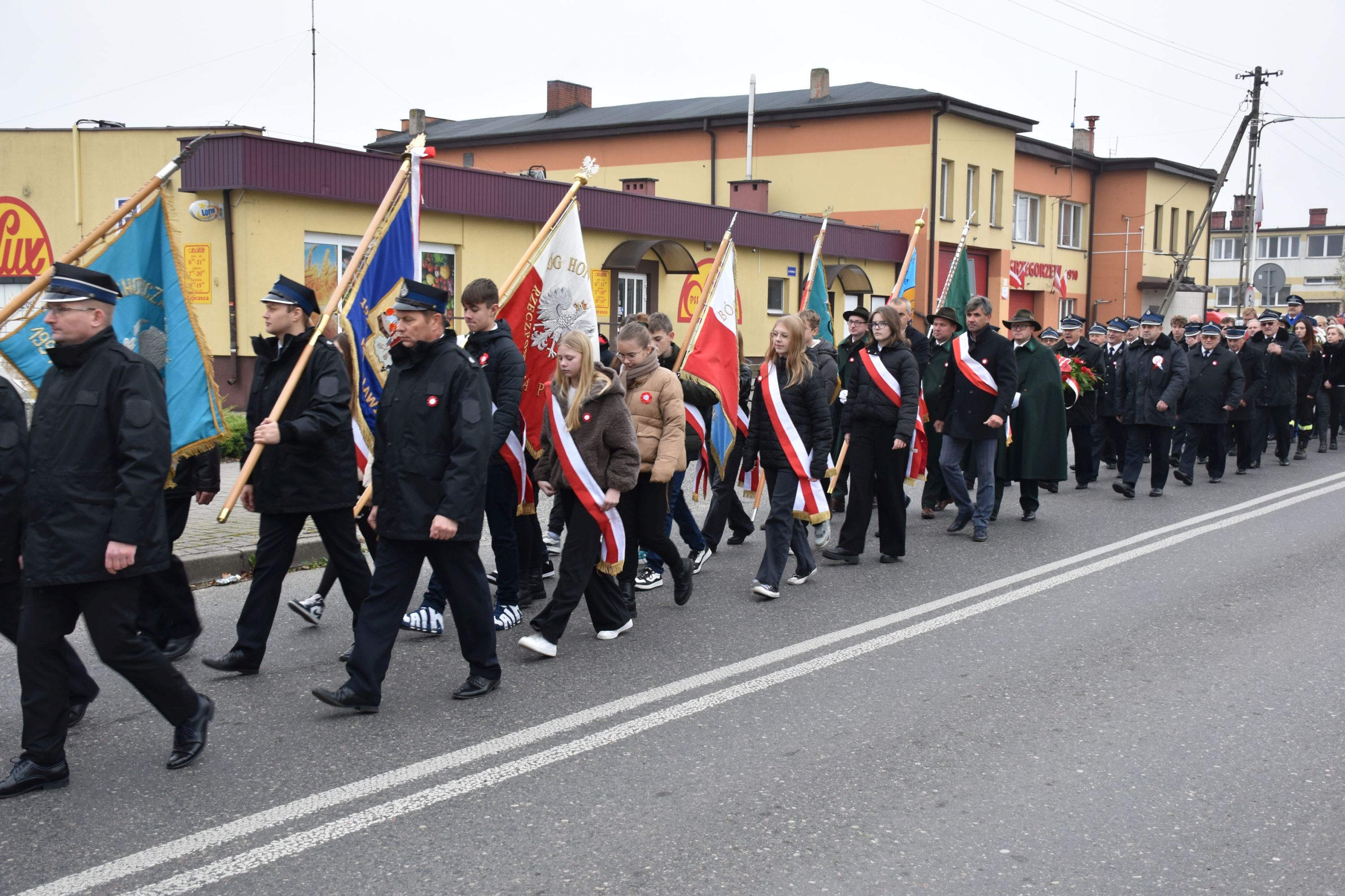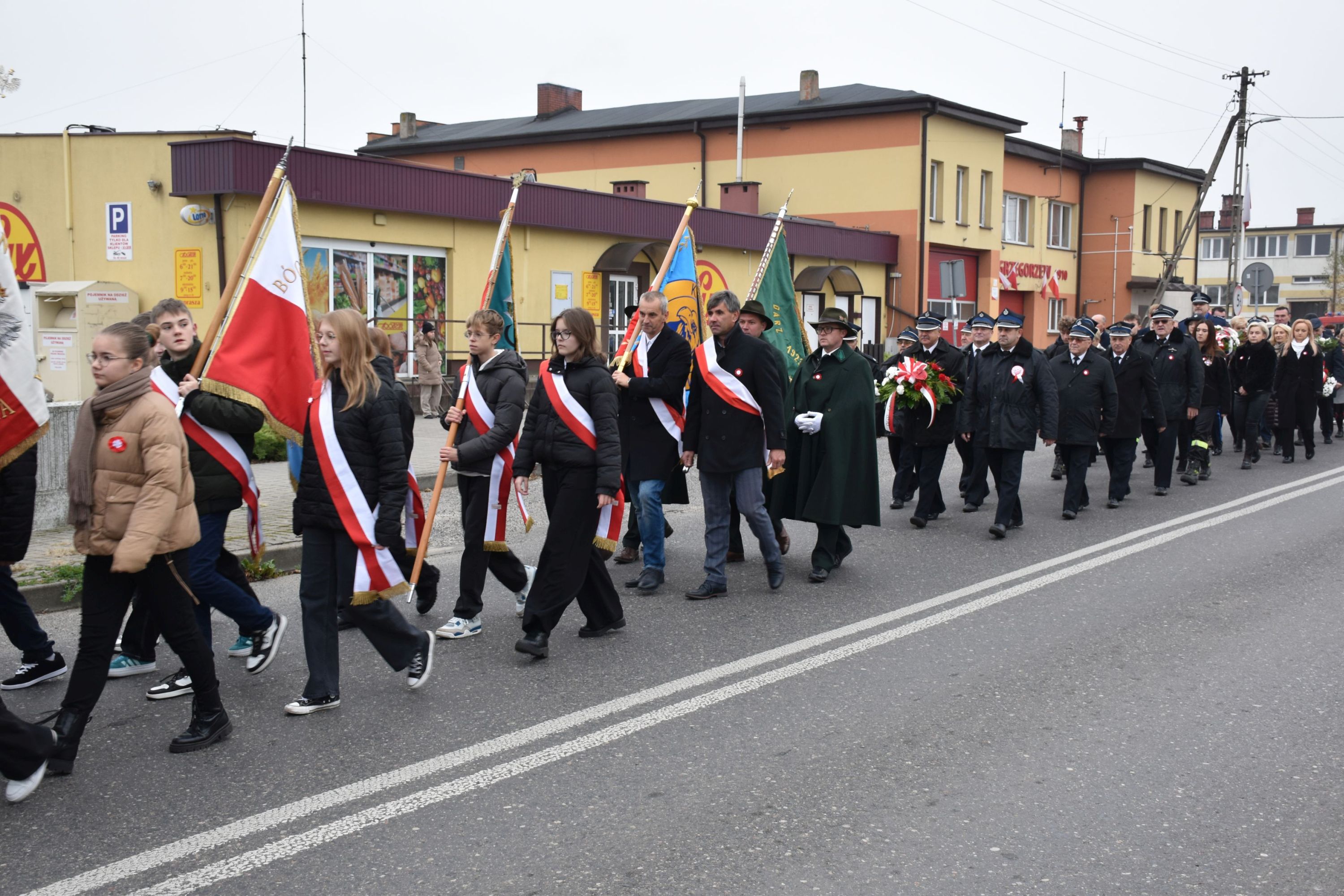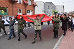 Bardzo pięknym akcentem tej uroczystości, który zasługuje na podkreślenie był przemarsz naszego młodego pokolenia z mającą ponad 44 m2 flagą Polski, która została uszyta 6 lat temu na setną rocznicę odzyskania niepodległości. Flaga została uszyta z kawałków materiału, na których mieszkańcy zarówno dorośli jak i dzieci pisali swoje "Listy do Polski".