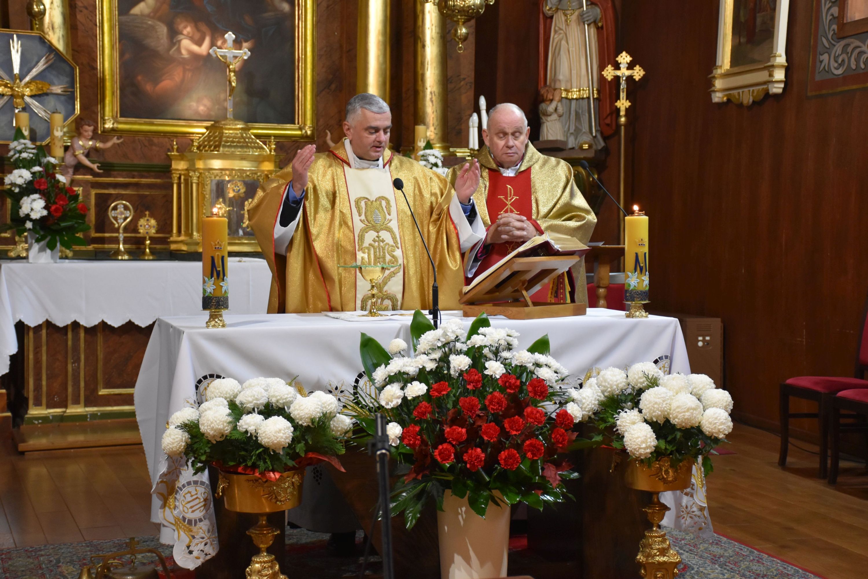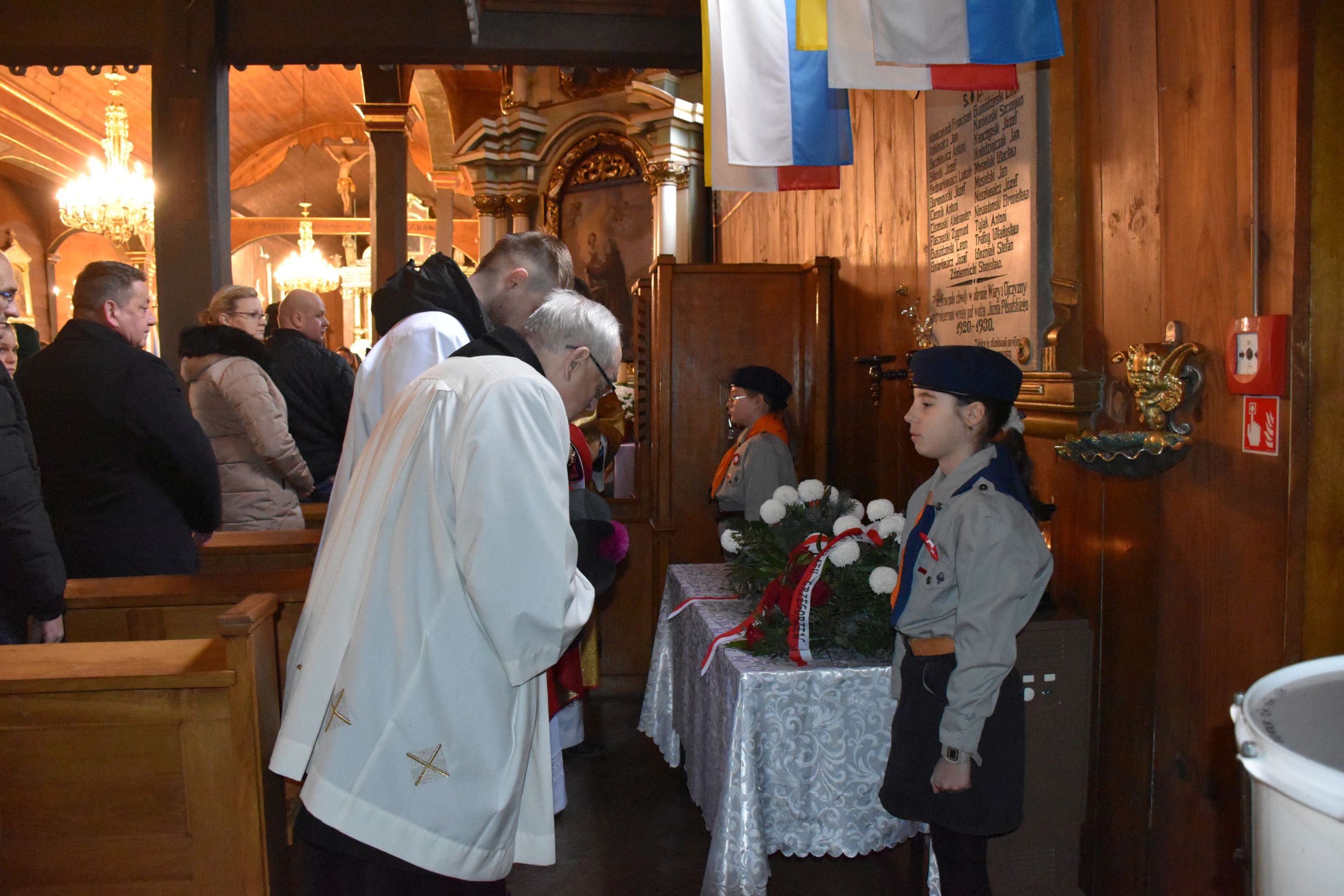 Mszę Świętą w intencji Ojczyzny odprawił proboszcz grzegorzewskiej parafii - ksiądz Tomasz Król w koncelebrze z księdzem kanonikiem Andrzejem Piesikiem.