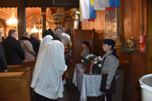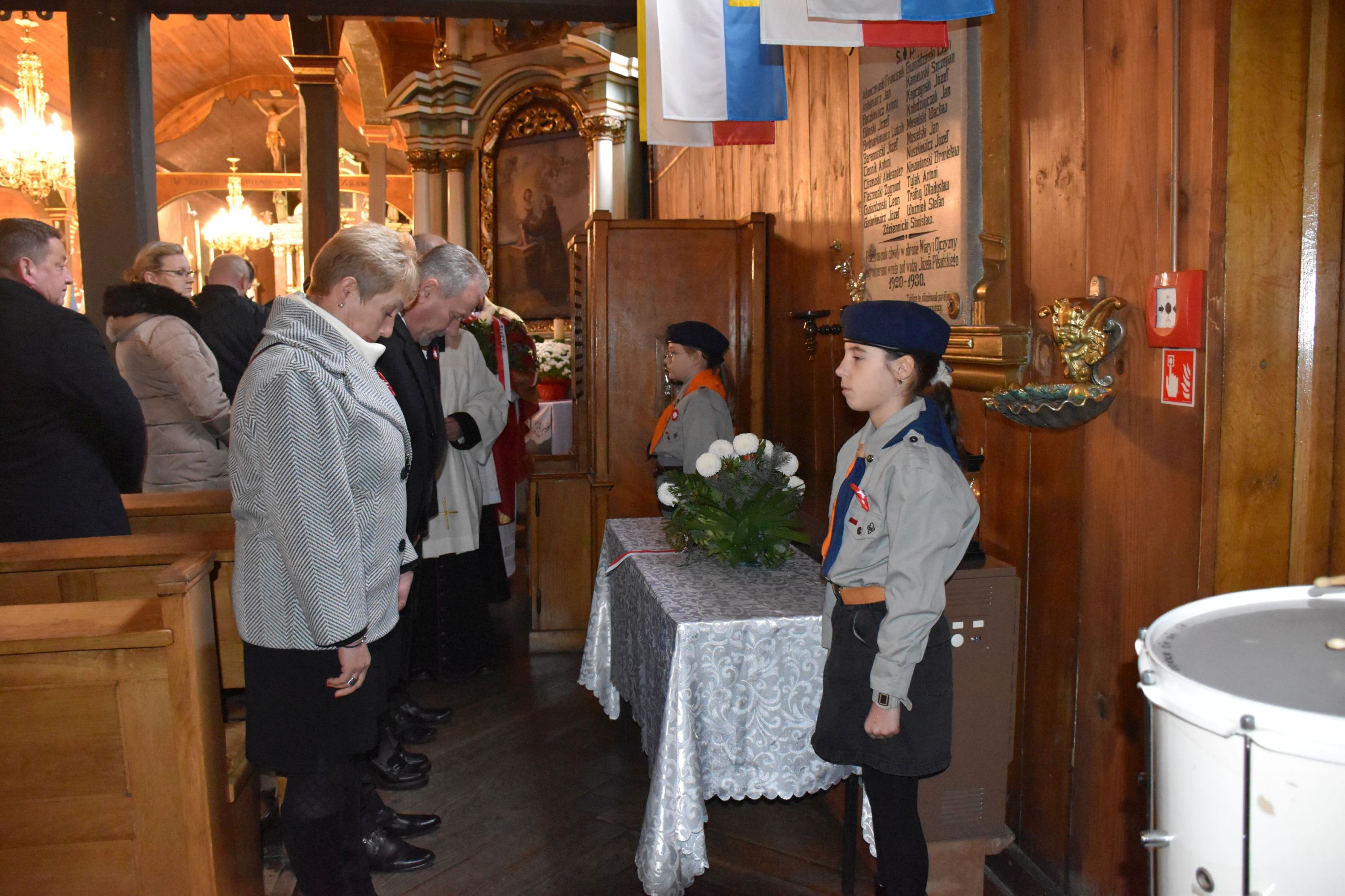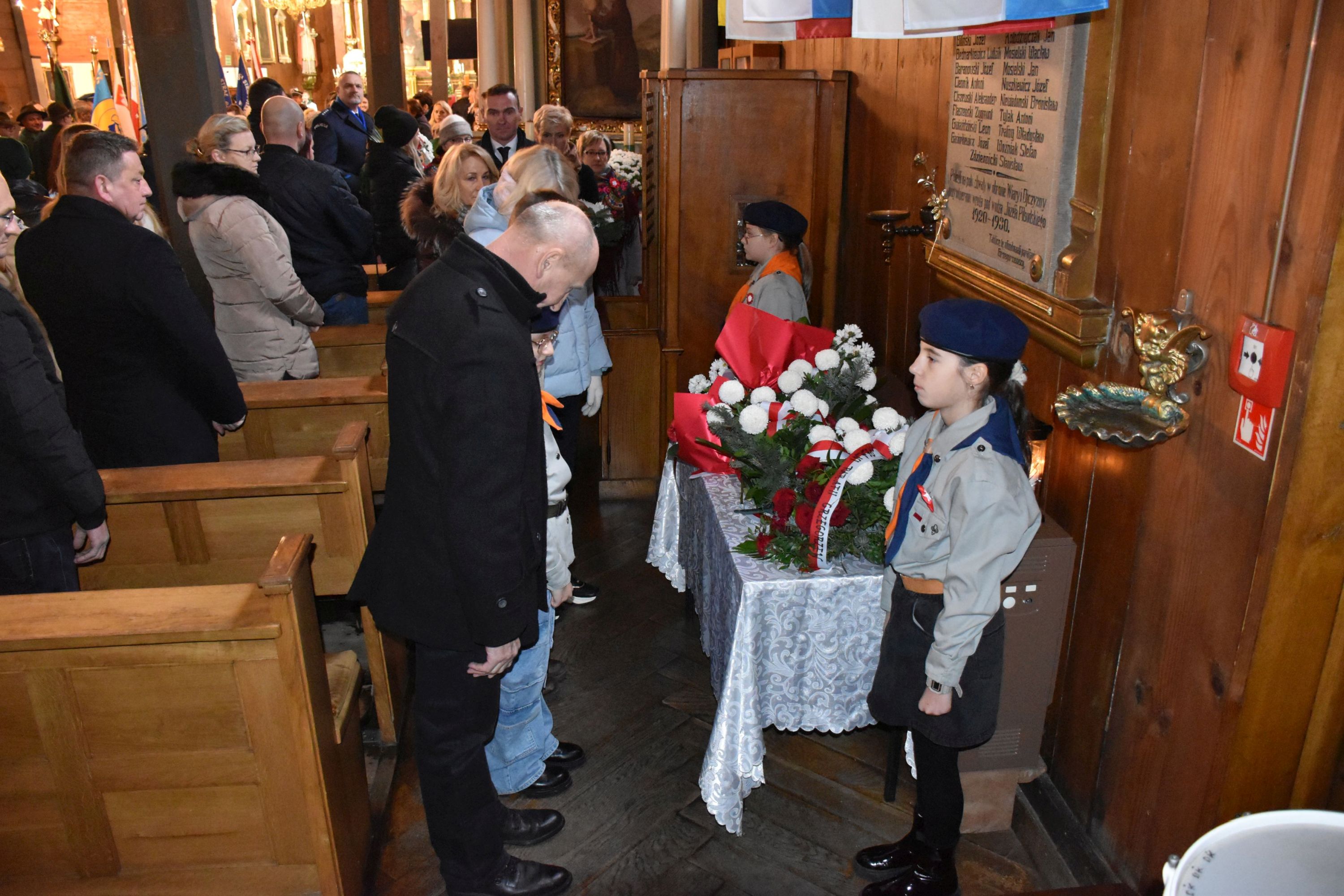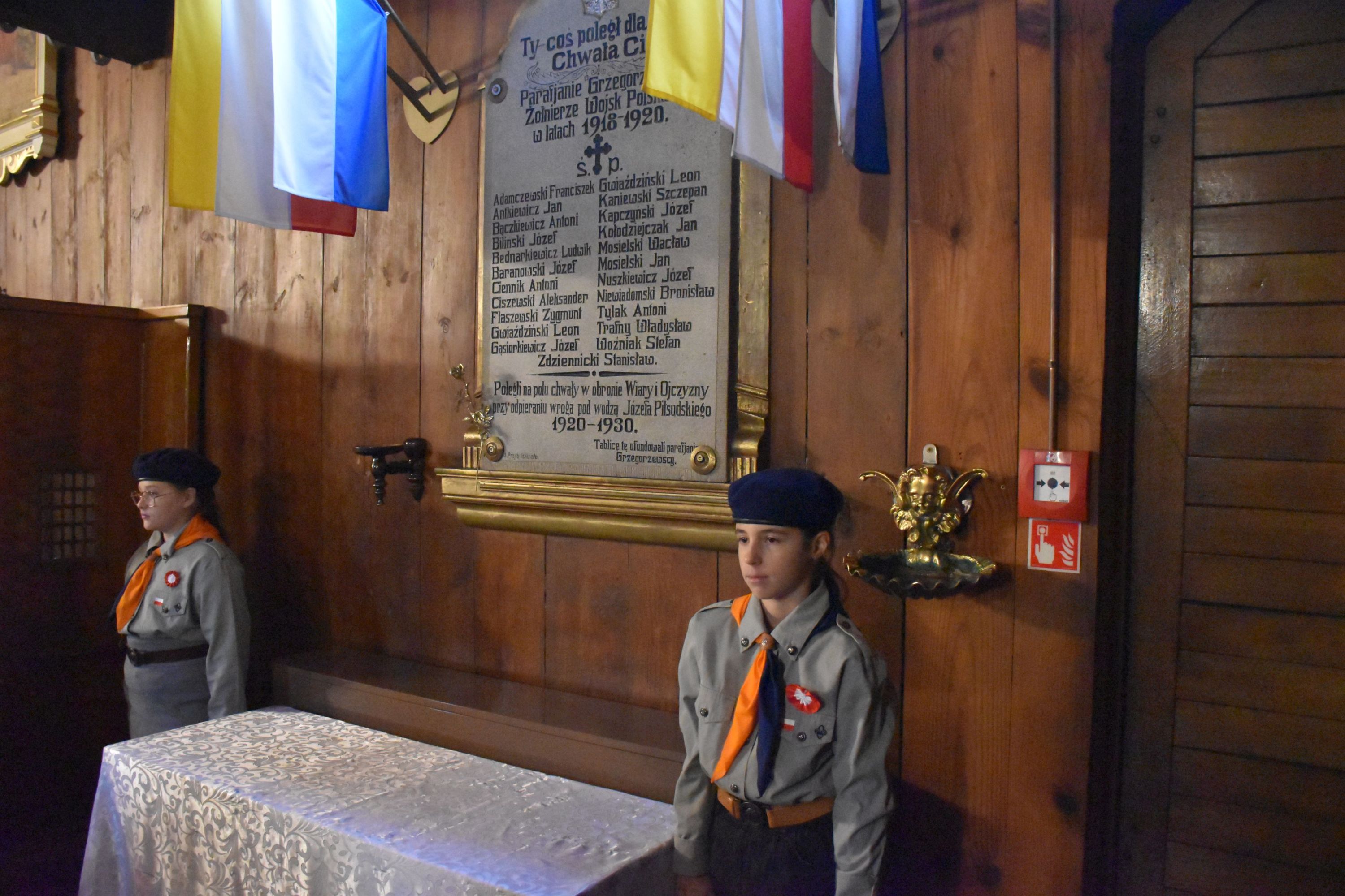 Na zakończenie Mszy Świętej, Dyrektor Muzeum Technik Ceramicznych w Kole Pan Tomasz Nuszkiewicz odczytał nazwiska poległych parafian grzegorzewskich w latach 1918-1920, a następnie pod tablicą upamiętniającą, delegacje złożyły kwiaty i zapaliły znicze.