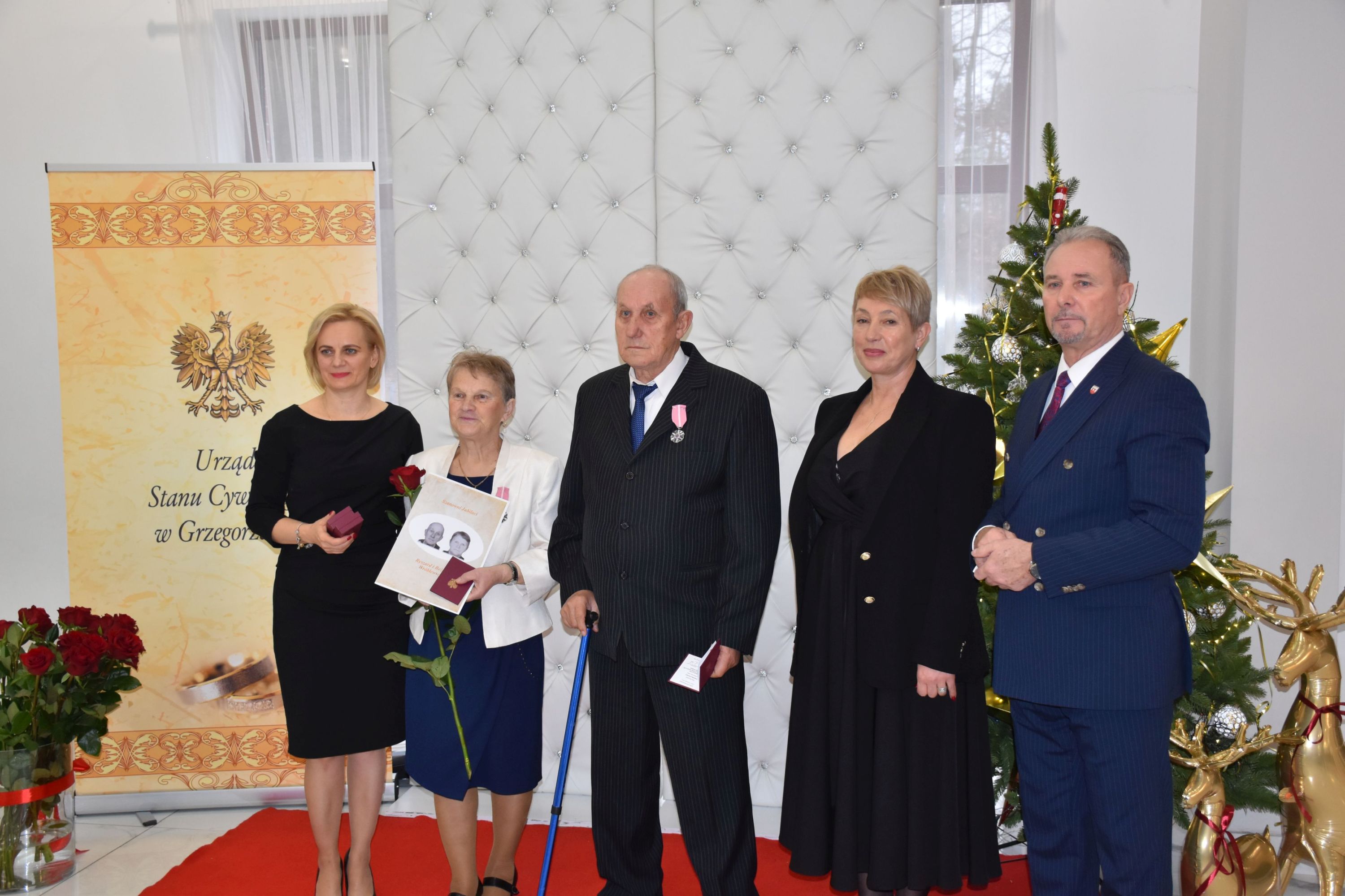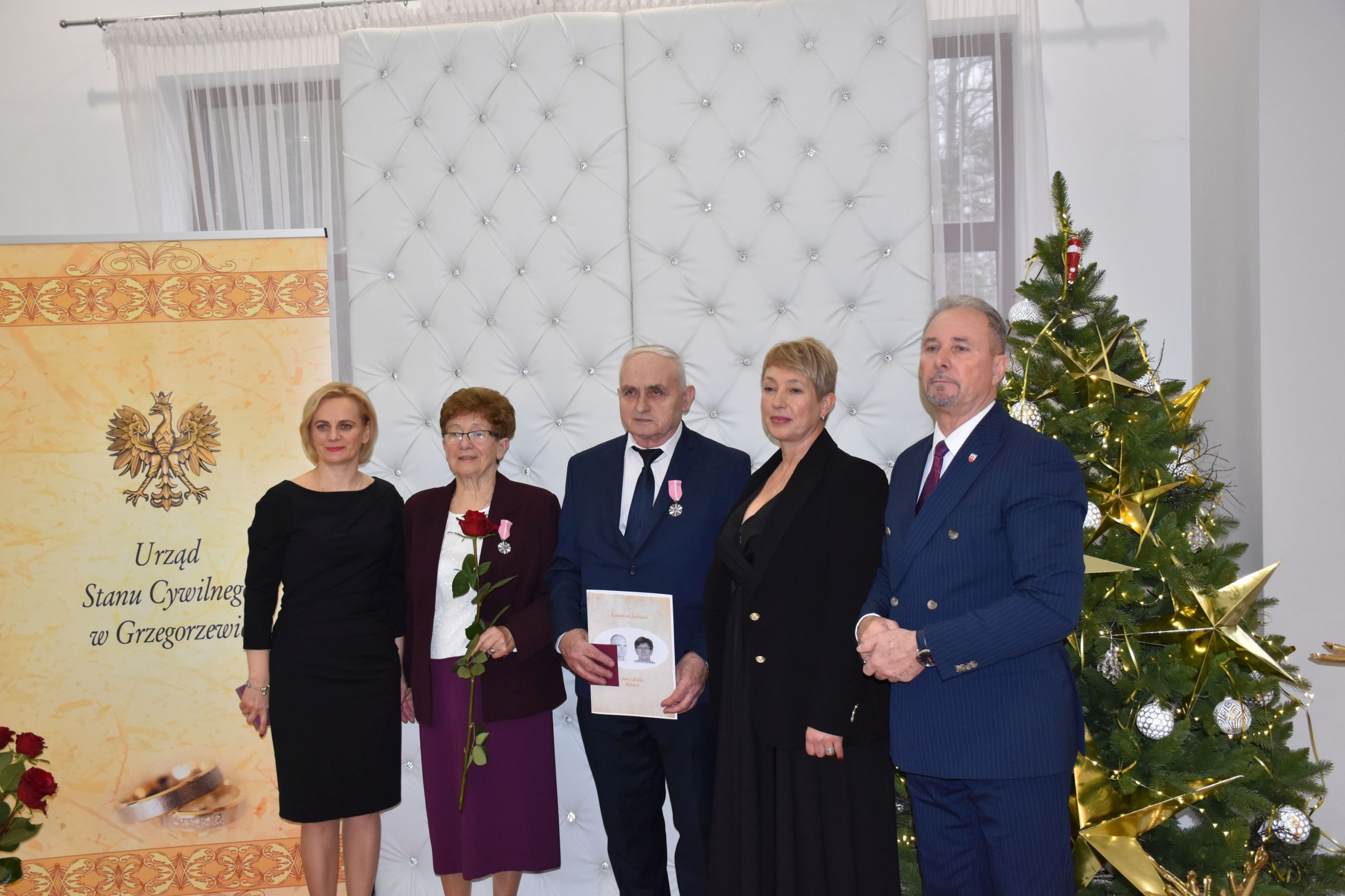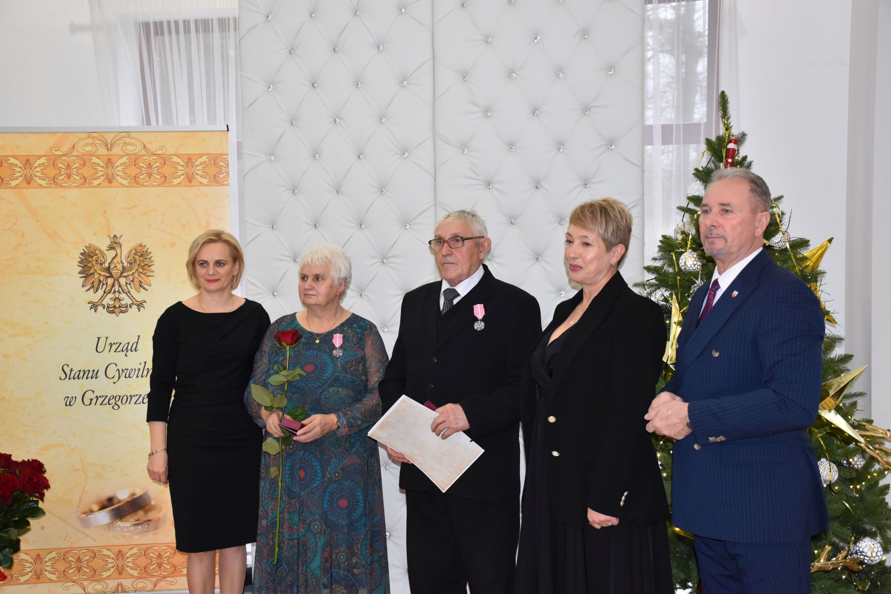 Aktu dekoracji medalami za długoletnie pożycie małżeńskie przyznanymi przez Prezydenta Rzeczypospolitej Polskiej dokonała Zastępca Wójta Gminy Grzegorzew Pani Katarzyna Fila wraz z Przewodniczącym Rady Gminy Panem Tadeuszem Sosnowskim i Zastępcą Kierownika USC Panią Anną Wawrzyniak.