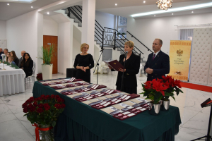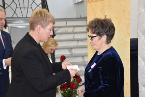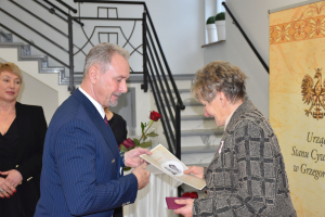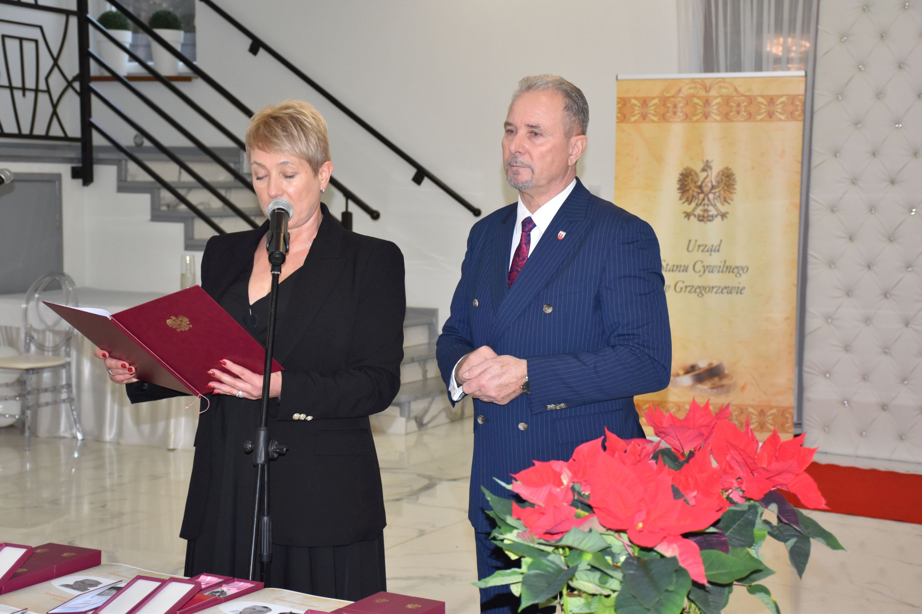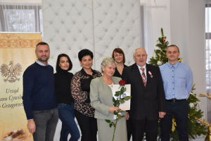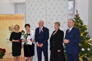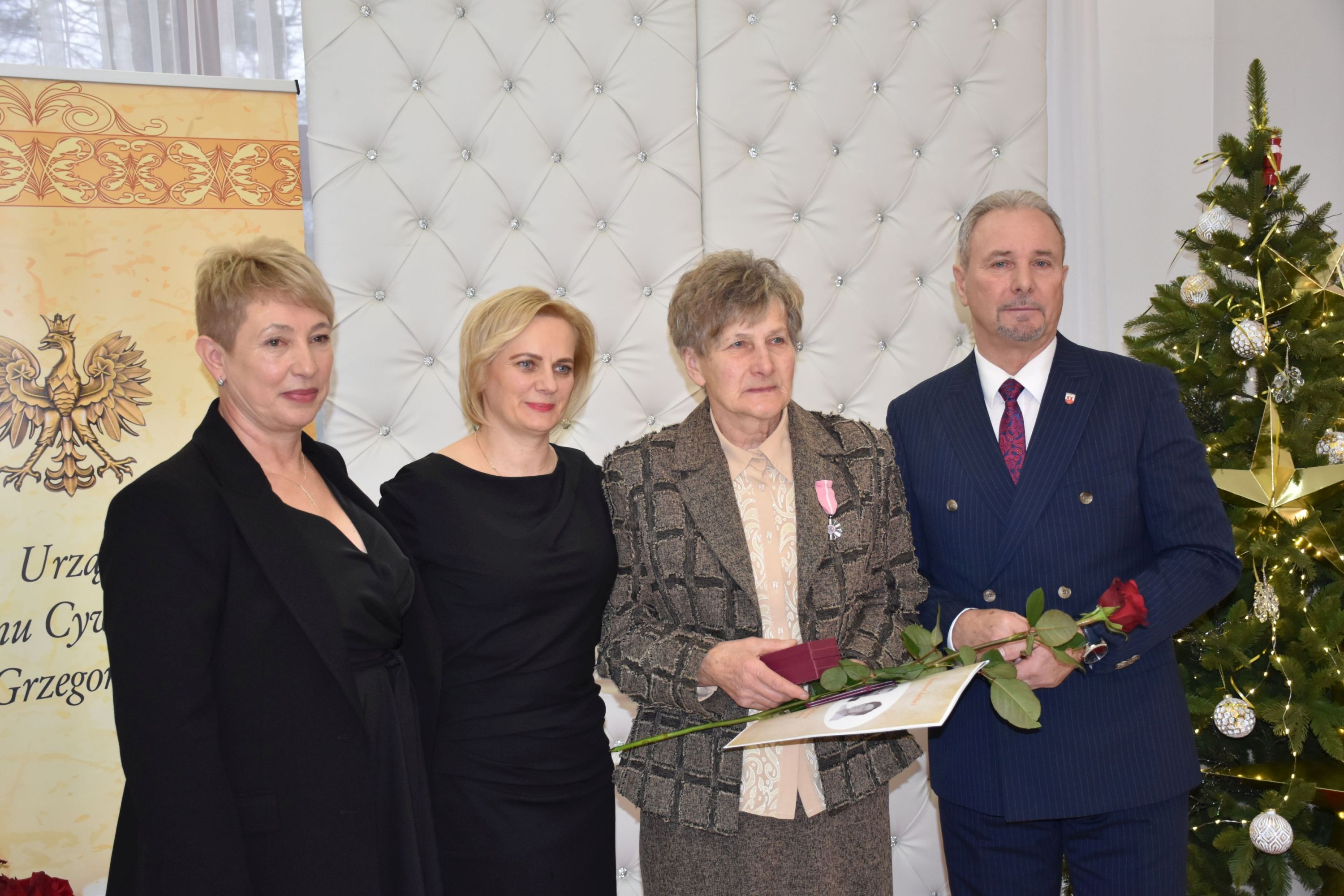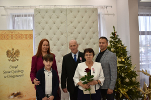 Aktu dekoracji medalami za długoletnie pożycie małżeńskie przyznanymi przez Prezydenta Rzeczypospolitej Polskiej dokonała Zastępca Wójta Gminy Grzegorzew Pani Katarzyna Fila wraz z Przewodniczącym Rady Gminy Panem Tadeuszem Sosnowskim i Zastępcą Kierownika USC Panią Anną Wawrzyniak.