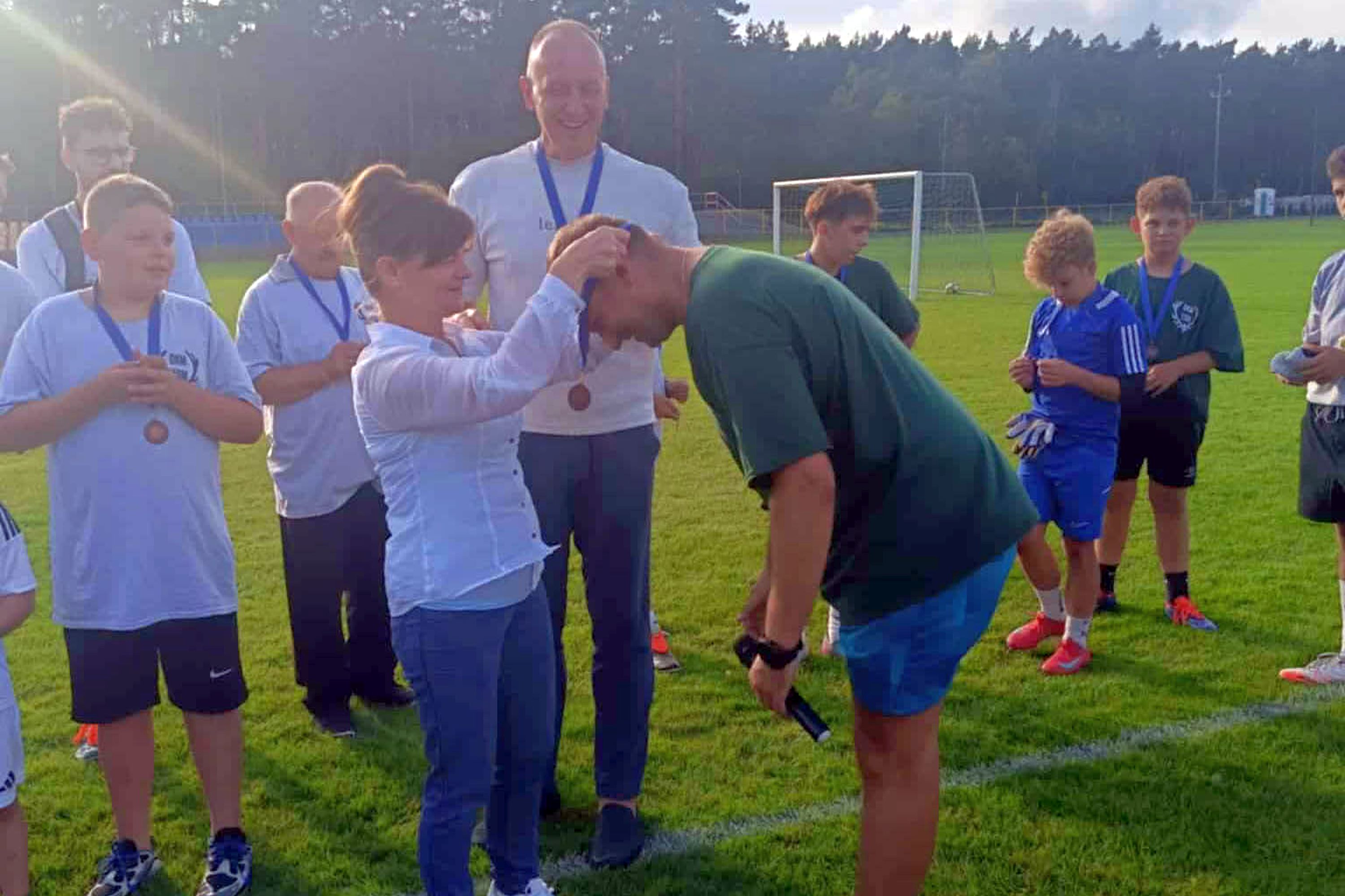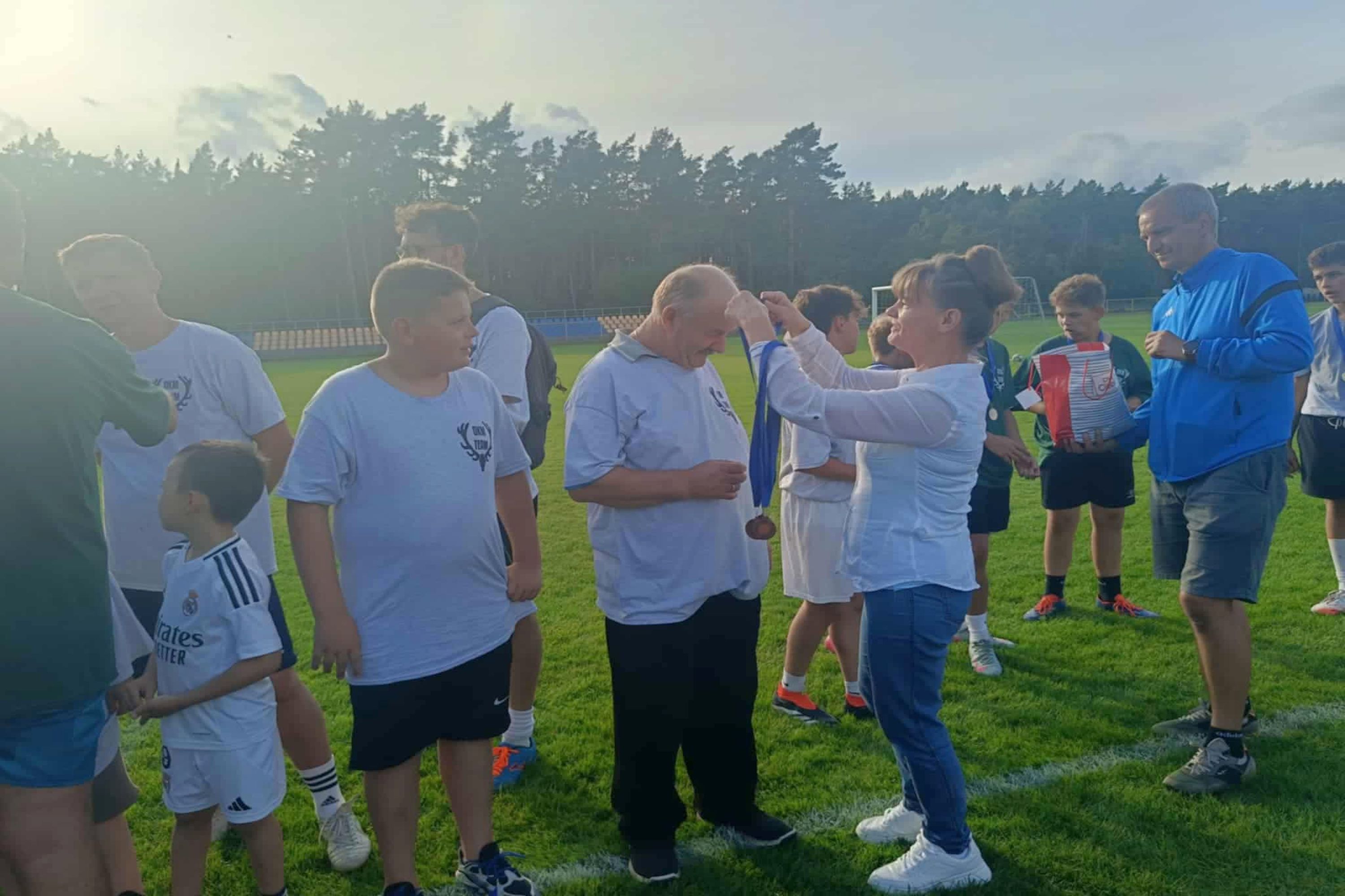 Największym zainteresowaniem cieszył się nasz najmłodszy uczestnik meczu – ośmiolatek, który z ogromnym zaangażowaniem wziął udział w grze i skradł serca publiczności.