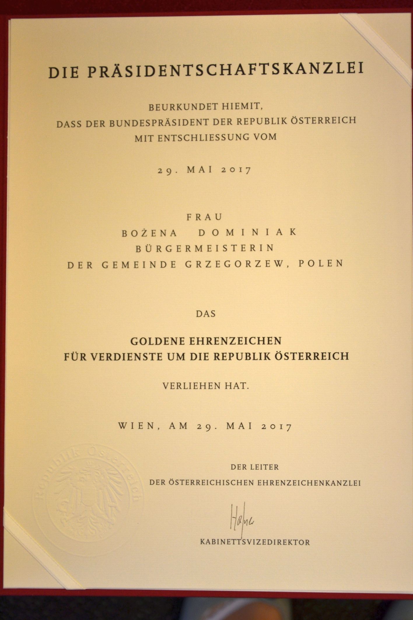 Gala Przekazania Konsulatu Honorowego Austrii Połączona Z Nadaniem Złotej Odznaki Honorowej Za Zasługi Dla Republiki Austrii